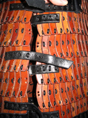 My leather lamellar closes with 3 straps on the shield arm side. some reason the photo won't show but here is the direct link.