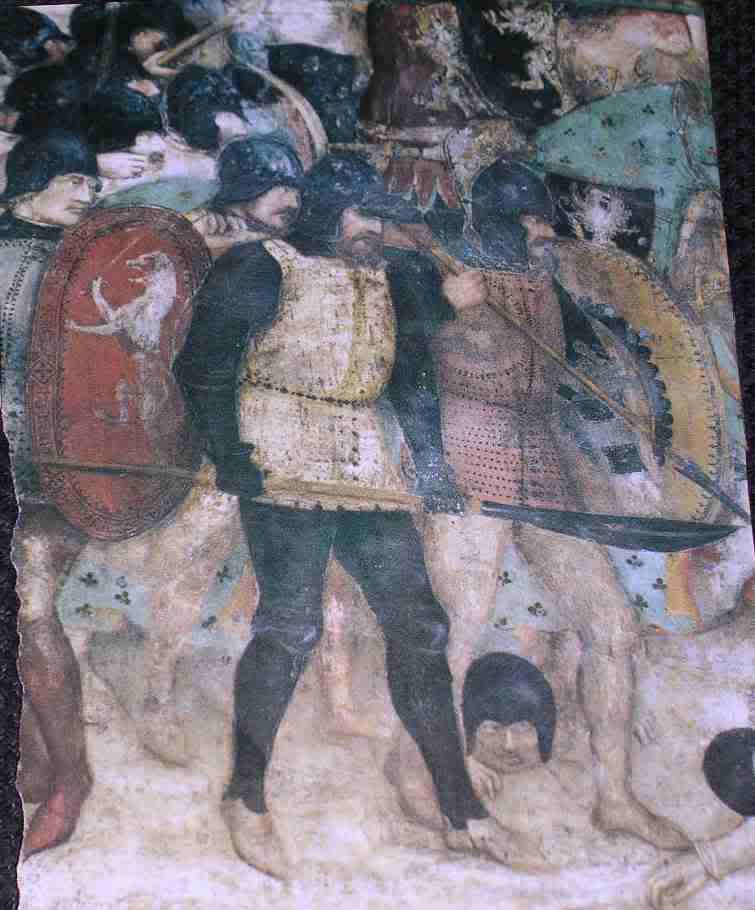It's a close up of this:GuntherofOrkney wrote: Sean what time period is that first picture from because I like those "archers" sallets. One of those with a chain coif.(well an aventail riveted inside to look like i am wearing a coif)
