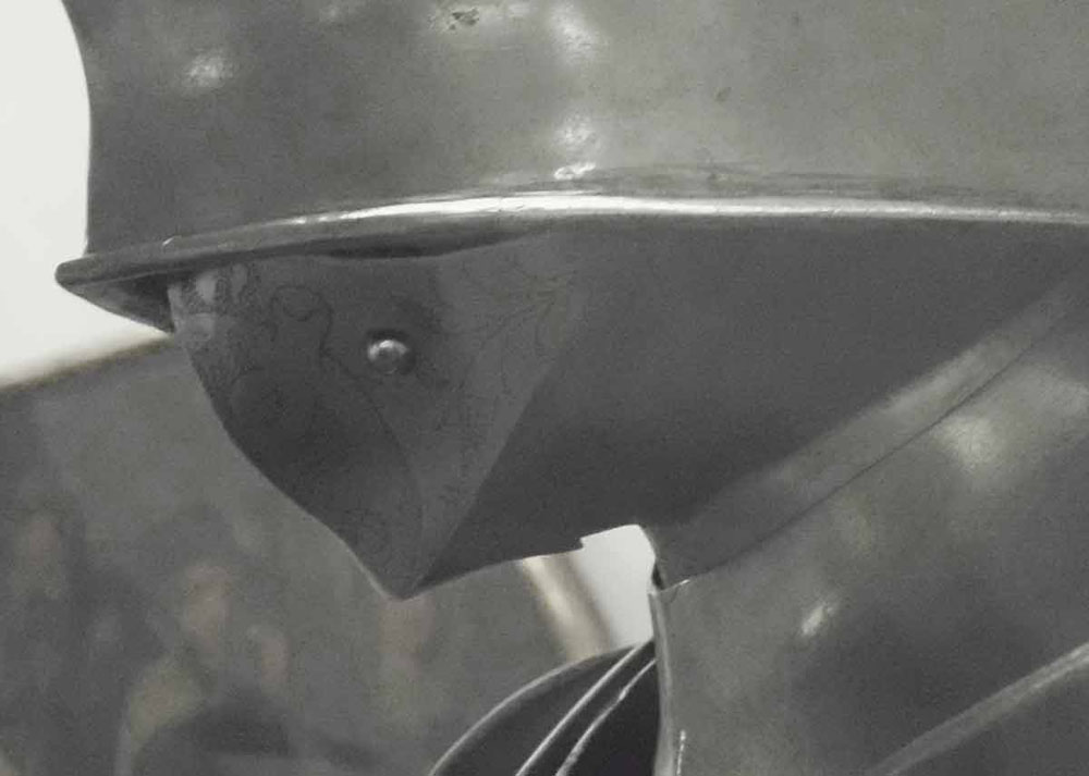 My keen interest in the possible use of a grand guard with the war harness is that it could possibly solve many of the issues with jousting in a sallet.